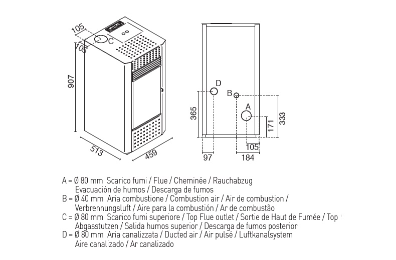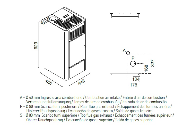 Pellet consumption: max 1,6 kg/h – min 0,6 kg/h