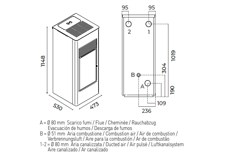 Pellet consumption: max 3,4 kg/h – min 0,9 kg/h