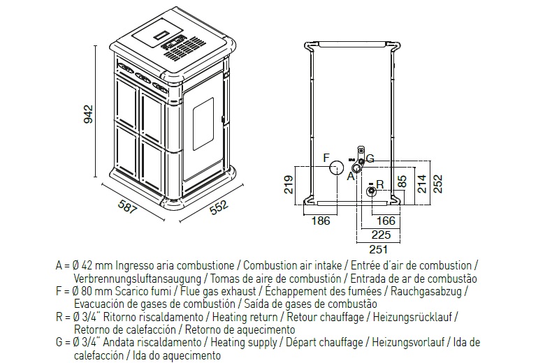 Pellet consumption: max 2,4 kg/h – min 1,0 kg/h