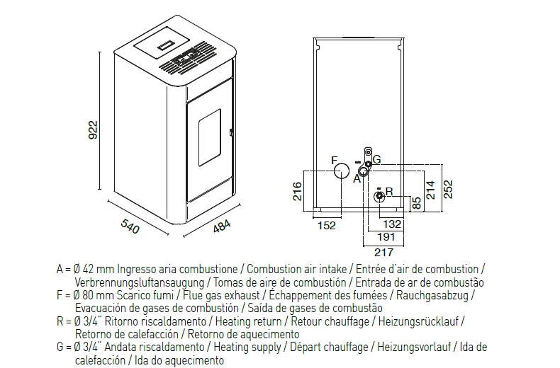 Pellet consumption: max 3,1 kg/h – min 1,0 kg/h