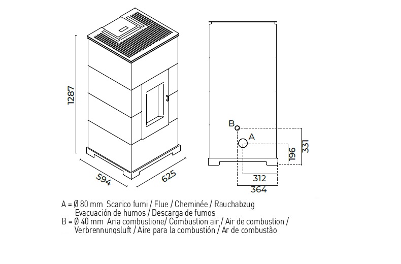 Consumo de pellets: max 2,3 kg/h – min 0,9 kg/h